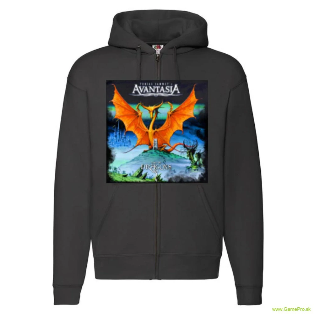 Hrubá mikina z kvalitného materiálu s motívom kapely Avantasia. Zdvojená látka na kapucni, krytý kovový zips, rebrovanie v páse a manžety z bavlny / elastanu.