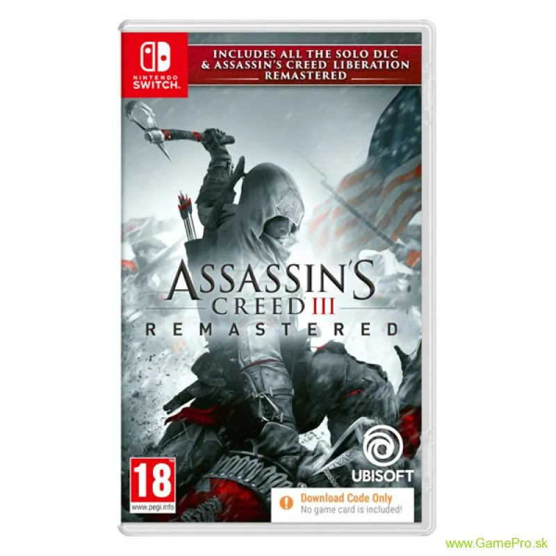 Prežite znovu americkú revolúciu alebo ju prežite prvýkrát v Assassins Creed III Remastered s vylepšenou grafikou a vylepšenými hernými mechanizmami.Navyše získate Assassins Creed III Liberation Remastered a všetok obsah DLC pre jedného hráča.Obsahuje: Assassins Creed III Liberation a všetky pôvodné DLC pre jedného hráča, vrátane The Tyranny of King Washington.Nové modely postáv, vylepšené prostredie a ďalšie.Vylepšené boli aj herné mechanizmy, ktoré vylepšujú váš herný zážitok.Medzi vylepšené funkcie Nintendo Switch patria: Dotyková obrazovka, HD a optimalizované rozhranie.Bojujte za slobodu!Americké kolónie sa chystajú na vzburu, zaistite svojim ľuďom a svojmu národu slobodu.